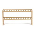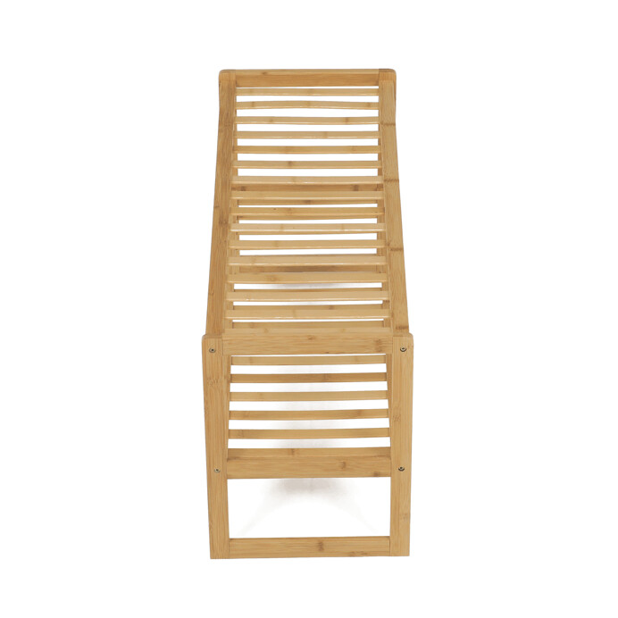 Botník s dvoma policami je vyrobený z masívneho bambusu v prírodnom odtieni, ktorý prináša do interiéru svieži a teplý vzhľad. Jeho otvorená konštrukcia umožňuje dobré vetranie obuvi a zároveň ponúka dostatok priestoru na uloženie viacerých párov topánok.