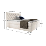 Je dodávaná so zabudovaným matracom a vlastným roštom. Vstavaný matrac sa skladá z kvalitných pružín typu Bonell a vysokoelastickej peny T30. Pružiny Bonell sú vyrobené z kvalitného drôtu, ktoré majú rovnakú veľkosť, špecifický tvar a silu, ktorá zodpovedá ich zaťaženiu. Jeho dlhú životnosť, pružnosť a správnu mäkkosť zaistí elastická pena T30. Boxspringová posteľ je dodávaná s vrchným matracom (topperom), ktorý poskytuje dodatočnú elasticitu a mäkkosť, zaručí pokojný a pohodlný spánok počas celej noci. Topper je vysoký cca 4 cm, odporúčame ho otáčať každé 2-3 mesiace. Poťah je snímateľný a prateľný v práčke pri teplote 30 °C.