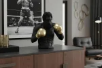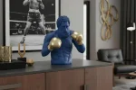 Dekoratívna figúrka BOXER prepája silu, dynamiku a súčasný dizajn v pôsobivej sochárskej podobe. Matný povrch tela vytvára výrazný kontrast so zlatými alebo striebornými boxerskými rukavicami, čo figúrke dodáva moderný a sofistikovaný charakter. Precízne spracovanie detailov podčiarkuje plastický vzhľad a robí z figúrky neprehliadnuteľný akcent každého interiéru.