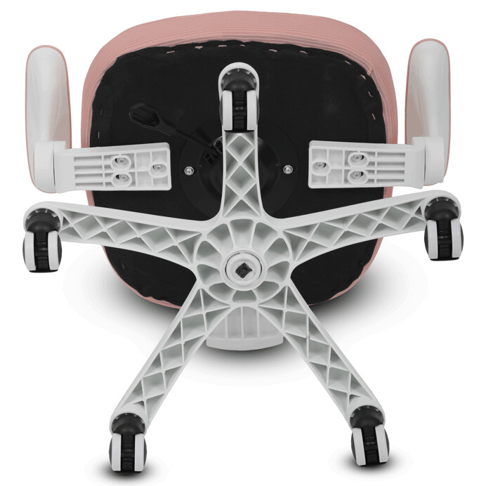 Odklápacie podrúčky umožňujú jednoduché prispôsobenie priestoru a biely plastový kríž s kolieskami je určený pre tvrdé podlahy, čo zaisťuje stabilitu a jednoduchú mobilitu. Mechanika umožňuje plynulé nastavenie výšky sedadla podľa potreby dieťaťa. Celková konštrukcia je navrhnutá tak, aby podporovala správne držanie tela a komfort pri práci alebo hraní.