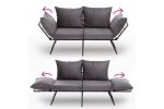 Vyrobená z 100% kovového rámu a čalúnená v mäkkej polyesterovej tkanine, táto pohovka na spanie ponúka dokonalú kombináciu trvanlivosti a pohodlia. Vankúše z 24 DNS peny poskytujú luxusný zážitok z sedenia, zatiaľ čo 14-stupňovo nastaviteľné opierky rúk vám umožňujú prispôsobiť si svoj relaxačný zážitok.