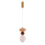 Szklana lampa wisząca z ceramicznymi elementami Ta lampa wisząca wprowadza miękkie, ciepłe światło do codziennych domowych rytuałów. Kolorowe, szklane elementy porządkują przestrzeń nad stołem lub stolikiem pomocniczym. Subtelne połączenie mosiądzu i bordowo-pomarańczowych akcentów podkreśla charakter aranżacji bez dominowania wnętrza. Oprawa Studio sprawdzi się tam, gdzie światło ma tworzyć spokojne, uporządkowane tło. Lampa nad niewielki stół lub kącik rozmów Proporcje oprawy sprzyjają zawieszeniu nad małym stołem w jadalni lub aneksie. Wysoka forma dobrze prezentuje się także nad okrągłym stolikiem w kąciku rozmów. Kolorystyka lampy porządkuje wizualnie strefę, gdy kuchnia łączy się z salonem. Szklany klosz ułatwia zachowanie czystości, co jest praktyczne przy oświetleniu strefy jedzenia. Sposób świecenia i komfort przy ciepłej barwie Barwa 3000K tworzy ciepłe światło – sprzyja spokojnym kolacjom i wieczornym rozmowom. Strumień 600 lm zapewnia wyraźną widoczność blatu – przydatne przy nakrywaniu stołu lub odkładaniu naczyń. Biały, szklany klosz równomiernie rozprasza światło – eliminuje ostre cienie podczas siedzenia przy stole. Pojedynczy punkt świetlny kieruje uwagę na środek blatu – wyznacza główną strefę spotkań domowników. Zintegrowany moduł LED ogranicza nagrzewanie oprawy – zwiększa komfort przy dłuższym przebywaniu pod lampą. Lampa wisząca do jadalni o ciepłym charakterze Ta lampa wisząca sufitowa sprawdzi się w jadalni, gdzie liczy się łagodne, rozproszone oświetlenie nad stół. Konstrukcja z kolorowego szkła i ciepłego światła wspiera tworzenie przytulnej, uporządkowanej strefy spotkań domowych.