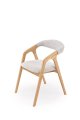 Táto elegantná stolička spája prírodnú krásu masívneho dreva, pohodlie čalúnenia a nadčasový dizajn. Jemne zaoblené línie a harmonické prepojenie sedadla s opierkou vytvárajú štýlový kus nábytku, ktorý vynikne v jedálni, pracovni aj modernom obývacom priestore.