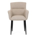 Čierne kovové nohy zaisťujú stabilitu a dodávajú stoličke jemný industriálny nádych. Komfortné podrúčky a ergonomické prevedenie oceníte pri každom posedení. Stolička sa hodí nielen do domácej jedálne, ale aj do reštauračných priestorov, kde vytvorí útulnú atmosféru.