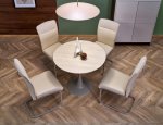 Jedálenský stôl TOLIO je ideálny do menších bytov alebo komerčných priestorov. Elegantná doska zo slintutého kameňa v dekóre travertínu dodáva stolu moderný a jedinečný dizajn.