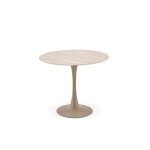 Stôl stojí na kónickej podnoži z pevnej lakovanej ocele v kašmírovom prevedení. Vďaka svojmu pevnému spracovaniu a modernému dizajnu sa tento jedálenský stôl stane dominantným prvkom vášho interiéru, okolo ktorého sa bude odohrávať spoločenský život.