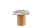 Okrúhly jedálenský stôl VENVET spája nadčasový dizajn s prvotriednymi materiálmi a stáva sa výrazným prvkom každej modernej jedálne. Doska je vyrobená z odolnej keramiky v mramorovom dekore, ktorý vyniká svojou krásou i praktickosťou – je odolná voči poškriabaniu a veľmi ľahko sa čistí. Masívna stredová podnož dodáva stolu výbornú stabilitu a elegantný vzhľad.