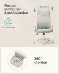 Táto ergonomická kancelárska stolička so zakriveným S-opieradlom prirodzene kopíruje tvar chrbta a poskytuje maximálnu oporu chrbtice pri práci alebo štúdiu. Nastaviteľná bedrová opierka a výškovo nastaviteľný sedák umožňujú individuálne nastavenie podľa vašej postavy. Skladacie podrúčky uľahčujú zasunutie stoličky pod stôl, zatiaľ čo hupací mechanizmus (90°–105°) prináša pohodlie počas prestávky. Priedušná sieťovina udržuje príjemnú teplotu aj pri dlhšom sedení a 6 cm hrubá penová výplň poskytuje optimálny komfort. Vďaka kovovej základni, bezpečnostným kolieskam s brzdou reagujúcou na záťaž a nosnosti až 120 kg je stolička stabilná a odolná. Spojuje moderný dizajn, funkčnosť a pohodlie – ideálna voľba do kancelárie alebo domácej pracovne.