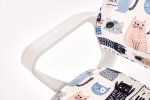 Základná mechanika umožňuje nastaviteľnú výšku sedu, čo prispieva k vašej relaxácii. Ergonomický dizajn operadla poskytuje podporu vašej chrbtice. Skvelá voľba pre moderné interiéry aj pracovné priestory. Stolička je čalúnená látkou s roztomilou potlačou mačiek.