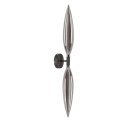 Kinkiet do wieczornej strefy relaksu Smukła, pionowa lampa ścienna tworzy spokojne tło światła w salonie lub sypialni, kiedy główne oświetlenie jest już zbędne, a potrzebne zostaje delikatne rozjaśnienie ściany przy sofie lub w okolicy łóżka. Oświetlenie ścienne do salonu i sypialni Dwupunktowa konstrukcja dobrze sprawdza się przy ścianie z kanapą, gdzie brakuje miejsca na lampę stojącą, a przyjemne oświetlenie ułatwia rozmowy i oglądanie telewizji bez ostrego blasku z sufitu. W sypialni taki kinkiet ścienny można umieścić przy wezgłowiu, aby dyskretnie rozjaśniał przestrzeń przed snem, pozostawiając resztę pokoju w półmroku sprzyjającym wyciszeniu. Rozproszone światło przez dymione szkło Dymione, szklane klosze kierują światło ku górze i dołowi, dzięki czemu na ścianie pojawiają się miękkie, podłużne plamy światła, odczuwalne szczególnie wieczorem podczas odpoczynku. Dwa niezależne źródła G9 pozwalają uzyskać szerszy zasięg oświetlenia, co ułatwia korzystanie z jednej oprawy jako nastrojowego, a jednocześnie praktycznego światła w części wypoczynkowej salonu. Czarna, stalowa podstawa porządkuje wizualnie kompozycję na ścianie, co pomaga utrzymać spójny układ w nowoczesnym wnętrzu z ciemniejszymi dodatkami. Możliwość doboru mocy zastosowanych żarówek G9 pozwala łatwo dopasować intensywność świecenia do potrzeb, od delikatnego oświetlenia wieczornego po jaśniejsze światło tła podczas spotkań rodzinnych. Kinkiet do wydzielenia spokojnej strefy Tego typu kinkiet do salonu lub strefy wypoczynkowej w sypialni sprawdzi się tam, gdzie potrzebne jest oświetlenie ścienne wyraźnie wyznaczające fragment przestrzeni do wieczornego relaksu, bez przejmowania roli głównej lampy sufitowej.