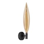 Kinkiet do nastrojowego oświetlenia strefowego Szczupła forma lampy ściennej porządkuje przestrzeń, tworząc subtelne światło uzupełniające wieczorem. Szklany klosz w ciepłym, bursztynowym odcieniu sprzyja wyciszeniu po intensywnym dniu. Metalowa podstawa w ciemnym kolorze wprowadza porządek w nowoczesnych aranżacjach Studio. Kinkiet do sypialni i salonu przy sofie Taki kinkiet sprawdza się przy bocznej ścianie kanapy, gdy brakuje miejsca na lampę stojącą. W sypialni dobrze działa przy wezgłowiu, jako delikatne oświetlenie przed snem. W wąskim fragmencie ściany, między oknem a zasłoną, porządkuje przestrzeń i dodaje światła bez zajmowania podłogi. Rozproszone światło przez bursztynowy klosz Podłużny, szklany klosz rozprasza światło na dużej wysokości – wieczorem tworzy miękką poświatę w strefie wypoczynkowej. Jedno źródło światła z trzonkiem G9 daje spokojny, punktowy blask – przydaje się podczas oglądania telewizji lub rozmów. Stalowa, ciemna podstawa ogranicza olśnienie od tyłu – światło nie męczy oczu podczas relaksu. Niewielka moc żarówki sprzyja nastrojowi – sprawdza się jako dyskretne oświetlenie nocne. Wybór do strefy wypoczynku na ścianie Taki kinkiet ścienny będzie praktycznym rozwiązaniem w strefie przy sofie lub fotelu. Sprawdza się również przy bocznej ścianie łóżka, gdy potrzebne jest delikatne oświetlenie wieczorne bez dominującej lampy sufitowej.