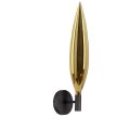 Kinkiet do spokojnego oświetlenia salonu i sypialni Smukła lampa ścienna wprowadza łagodne światło wieczorem, gdy główne oświetlenie przestaje być potrzebne. Złoty szklany klosz tworzy ciepłą poświatę, sprzyjając wyciszeniu po dniu. Metalowa podstawa w ciemnym kolorze porządkuje strefę ściany, nie zajmując miejsca na podłodze ani szafkach. Produkt marki Studio sprawdza się jako dyskretne tło dla codziennych aktywności domowych. Oświetlenie ścienne do strefy wypoczynku Kinkiet dobrze działa w salonie obok kanapy, gdzie potrzebne jest delikatne światło do rozmów. W sypialni można umieścić go po stronie łóżka, tworząc osobną strefę do wieczornego relaksu. W wąskim korytarzu zastępuje lampę stojącą, ułatwiając poruszanie się po domu po zmroku. Wysoka, wąska forma sprawdza się przy filarze lub wąskim fragmencie ściany, gdzie standardowe oprawy się nie mieszczą. Sposób świecenia i efekt złotego klosza Szklany klosz w kolorze złotym filtruje światło – wieczorem tworzy przytulną, ciepłą poświatę w strefie wypoczynku. Jedno źródło światła G9 o mocy 5 W zapewnia subtelne, oszczędne oświetlenie ścienne do codziennego użytkowania. Wydłużony kształt klosza kieruje światło głównie w górę i dół – przy kanapie powstaje spokojny efekt dekoracyjny, bez oślepiania oczu. Stalowa podstawa stabilizuje oprawę na ścianie, co ma znaczenie przy częstym włączaniu światła w ciągu dnia. Połączenie ciemnej podstawy ze złotem klosza porządkuje przestrzeń także w ciągu dnia, gdy kinkiet jest wyłączony. Kinkiet do salonu i sypialni z akcentem złota Taki kinkiet ścienny sprawdza się w strefie wypoczynkowej salonu oraz przy łóżku, gdy potrzebne jest nienachalne światło tła. Złoty, szklany klosz dodaje akcentu tam, gdzie ściana wymaga dyskretnego podkreślenia bez intensywnego doświetlania całego pomieszczenia.