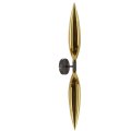 Podłużna forma dobrze porządkuje przestrzeń przy łóżku lub przy kanapie wypoczynkowej. Dwa punkty świetlne ułatwiają równomierne doświetlenie wybranego fragmentu ściany, na przykład przy zagłówku. Metalowa podstawa zajmuje niewiele miejsca, więc kinkiet ścienny można zamontować tam, gdzie brakuje miejsca na lampę stojącą. Złote, szklane elementy dodają akcentu dekoracyjnego, który podkreśla nowoczesny charakter wystroju.