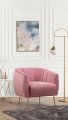 Vychutnajte si luxus a sofistikovanosť s naším ohromujúcim kreslom Dusty Rose. Tento elegantný kus pozdvihne akúkoľvek miestnosť svojím glamóznym dizajnom a štýlom inšpirovaným hotelmi. Mäkka polyesterová tkanina a nadýchané penové vankúše poskytujú maximálne pohodlie na oddych alebo čítanie knihy. Zlaté kovové nohy dodávajú tomuto klasickému kusu moderný nádych, čím sa stáva nadčasovým doplnkom vašej domácnosti.