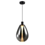 Szklany, dymiony klosz – delikatnie przyciemnia strumień, co zmniejsza olśnienie przy dłuższym siedzeniu przy stole.