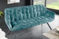 Je dostupná v niekoľkých variantoch poťahu: štruktúrovaná tkanina v odtieni béžovej (šampaň) a antracitovej. Sivá, horčicová a tyrkysová - zamatová látka, čo vám umožňuje vybrať si štýl, ktorý najlepšie ladí s vašim interiérom. Robustný rám z kovu s práškovým nástrekom dodáva pohovke stabilnú oporu a moderný vzhľad.