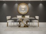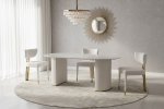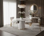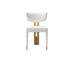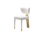 Táto očarujúca čalúnená stolička má nohy z nehrdzavejúcej ocele v zlatej farbe v kombinácii s mäkkou bielou ženilkovou látkou, ktorá dodá každej jedálni nádych elegancie.