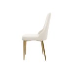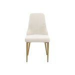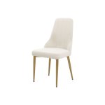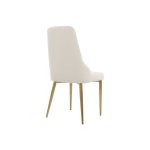 Táto očarujúca čalúnená stolička má nohy z nehrdzavejúcej ocele v zlatej brúsenej farbe v kombinácii s mäkkou, sivobielou zamatovou látkou, ktorá dodá každej jedálni nádych elegancie.