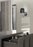 Klasický chróm v kombinácii s čiernym tienidlom z pásky. Krištáľové prvky zavesené na ramene dodávajú eleganciu. Ideálne do klasických interiérov s tradičným zariadením.