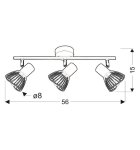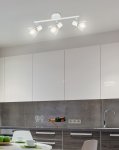 Skromný a nenápadný; biele prevedenie s chrómovými vložkami, prelamované tienidlo, ktoré zabezpečuje maximálne využitie výkonu svetelného zdroja; možnosť nastavenia uhla tienidla lampy; k súprave: nástenná lampa, pásová lampa 2 a stropná lampa 3; dostupné v troch farbách: biela s chrómom, čierna, čierna so zlatom;