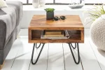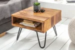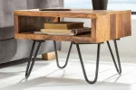 Industriálny štýl s retro nádychom je nadčasový. Kombinácia prírodného sheeshamového dreva a čierno lakovaných kovových nôh vytvára harmóniu, ktorá nenudí, ale inšpiruje. FILEMON je ideálny pre milovníkov minimalistického, ale zároveň originálneho designu. FILEMON kombinuje trendy retro vlásenkové nohy z kovu s sheeshamového drevom. Tento kontrast dodáva stolíku vzdušný a elegantný vzhľad.