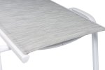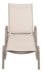 Stohovateľné prevedenie umožňuje ľahkú manipuláciu a uschovanie viacerých kusov. Vysoko pevná, priedušná a rýchloschnúca látka, ktorá sa prispôsobí tvaru tela a odolá poveternostným vplyvom aj UV žiareniu. Podrúčky z kvalitného polyméru sú zladené s dizajnom konštrukcie, príjemné na dotyk a trvanlivé. Lehátko má moderný, nadčasový vzhľad, ktorý ľahko doplníte poduškami rôznych farieb a štýlov pre osobitý vzhľad.