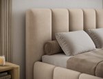 Edvige je dokonale pohodlná, vkusná a originální postel ve stylu glamour, která okouzlí svou jedinečnou formou. Spací plocha, dostupná ve variantách 140, 160 nebo 180 x 220 cm, poskytuje dostatek prostoru pro volný odpočinek přizpůsobený osobním preferencím, potřebám i velikosti ložnice. Model Edvige se vyznačuje vysokým čelem a bočnicemi, které jsou pro větší komfort vyplněny dodatečnou vrstvou pěny. Estetický dojem umocňuje podélné, rozsáhlé prošívání, které dodává posteli luxusní charakter. Široká nabídka barevných variant usnadňuje sladění nábytku s ostatním vybavením interiéru. V tomto případě se modernost a modernistické provedení snoubí s elegancí, díky čemuž je Edvige ideálním vybavením každé ložnice. Určitě stojí za to mít tuto postel doma.