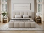 Edvige je dokonale pohodlná, vkusná a originálna posteľ v štýle glamour, ktorá očarí svojou jedinečnou formou. Spacia plocha, dostupná vo variantoch 140, 160 alebo 180 x 220 cm, poskytuje dostatok priestoru na voľný odpočinok prispôsobený osobným preferenciám, potrebám aj veľkosti spálne. Model Edvige sa vyznačuje vysokým čelom a bočnicami, ktoré sú pre väčší komfort vyplnené dodatočnou vrstvou peny. Estetický dojem umocňuje pozdĺžne, rozsiahle prešívanie, ktoré dodáva posteli luxusný charakter. Široká ponuka farebných variantov uľahčuje zladenie nábytku s ostatným vybavením interiéru. V tomto prípade sa modernosť a modernistické prevedenie snúbi s eleganciou, vďaka čomu je Edvige ideálnym vybavením každej spálne. Určite stojí za to mať túto posteľ doma.