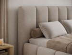 Edvige je dokonale pohodlná, vkusná a originálna posteľ v štýle glamour, ktorá očarí svojou jedinečnou formou. Spacia plocha, dostupná vo variantoch 140, 160 alebo 180 x 220 cm, poskytuje dostatok priestoru na voľný odpočinok prispôsobený osobným preferenciám, potrebám aj veľkosti spálne. Model Edvige sa vyznačuje vysokým čelom a bočnicami, ktoré sú pre väčší komfort vyplnené dodatočnou vrstvou peny. Estetický dojem umocňuje pozdĺžne, rozsiahle prešívanie, ktoré dodáva posteli luxusný charakter. Široká ponuka farebných variantov uľahčuje zladenie nábytku s ostatným vybavením interiéru. V tomto prípade sa modernosť a modernistické prevedenie snúbi s eleganciou, vďaka čomu je Edvige ideálnym vybavením každej spálne. Určite stojí za to mať túto posteľ doma.