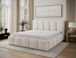 Edvige je dokonale pohodlná, vkusná a originálna posteľ v štýle glamour, ktorá očarí svojou jedinečnou formou. Spacia plocha, dostupná vo variantoch 140, 160 alebo 180 x 220 cm, poskytuje dostatok priestoru na voľný odpočinok prispôsobený osobným preferenciám, potrebám aj veľkosti spálne. Model Edvige sa vyznačuje vysokým čelom a bočnicami, ktoré sú pre väčší komfort vyplnené dodatočnou vrstvou peny. Estetický dojem umocňuje pozdĺžne, rozsiahle prešívanie, ktoré dodáva posteli luxusný charakter. Široká ponuka farebných variantov uľahčuje zladenie nábytku s ostatným vybavením interiéru. V tomto prípade sa modernosť a modernistické prevedenie snúbi s eleganciou, vďaka čomu je Edvige ideálnym vybavením každej spálne. Určite stojí za to mať túto posteľ doma.