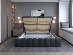 Lamica je veľmi pohodlná, mäkká a originálne spracovaná posteľ v štýle glamour, ktorá očarí neobvyklým tvarom a výraznou formou. Tento kus nábytku sa skladá z robustného korpusu a dreveného roštu, pričom nechýba ani úložný priestor na lôžkoviny. Ložná plocha s rozmermi 90 x 200 cm poskytuje dostatok priestoru na voľný a komfortný odpočinok. Výnimočnosť postele Lamica spočíva predovšetkým v jej prevedení – vysoké čelo aj bočnice sú vyplnené dodatočnou penou, ktorá zaisťuje mäkkosť a vizuálnu atraktivitu. Estetický dojem umocňujú výrazné pozdĺžne prešitie, ktoré prepožičiavajú posteli luxusný charakter. Široká ponuka farebných možností umožňuje ľahké začlenenie do rôznych interiérov. Významným bonusom je aj čelo s integrovaným LED osvetlením, ktoré spríjemňuje večernú relaxáciu. V tomto prípade sa modernosť a modernistické spracovanie snúbi s eleganciou, vďaka čomu bude Lamica vždy perfektnou voľbou. Určite stojí za to ju mať vo svojej spálni.