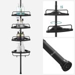 Táto praktická rohová polica do kúpeľne prináša inteligentné riešenie na uloženie všetkých sprchových potrieb. Vyrobená z kvalitnej ocele s práškovým nástrekom, odoláva vode aj hrdzi a zaručuje dlhú životnosť. Štyri nastaviteľné police a tri háčiky ponúkajú dostatok priestoru na šampóny, sprchové gély, špongie či rukavice. Každú policu možno ľahko prispôsobiť podľa potreby a vďaka odtokovým otvorom sa na nej nehromadí voda. Bočné tyče je možné namontovať nahor (na ochranu pred pádom predmetov) alebo nadol (na zavesenie doplnkov). Teleskopický mechanizmus umožňuje výškové nastavenie v rozmedzí 85–305 cm, takže sa prispôsobí väčšine kúpeľní.