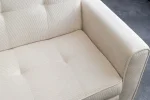 Pohovka je čalúnená jemnou manšestrovou látkou, ktorá je príjemná na dotyk a zároveň nenáročná na údržbu. Dekoratívne prešívanie sedadla a operadla zvýrazňuje elegantný dizajn a dodáva pohovke vizuálnu hĺbku. Materiál si dlhodobo zachováva svoj tvar aj farbu, takže pohovka zostáva krásna aj pri každodennom používaní.