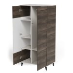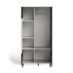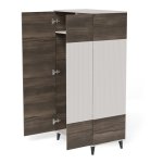 Súčasťou zostavy je aj šatníková skriňa RANDOM S-1, ktorá ponúka dostatok úložného priestoru v podobe políc ukrytých za dvoma dvierkami a jednej šatníkovej tyče. Dvierka je možné upevniť podľa ľubovoľného poradia. Stabilitu zaisťujú čierne polypropylénové nožičky.