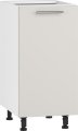 Spodná jednodverová skrinka D-40/82 je vybavená jednou policou a tým vzniká dostatok priestoru pre uloženie i väčších vecí. Stojí na štyroch nožičkách s regulovateľnou výškou.