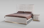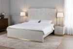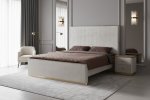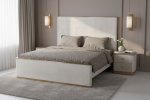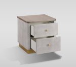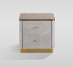 Tento béžovosivý nočný stolík má korpus zo štruktúrovanej žraločiej kože (šagrén). Zlatá základňa dokonale dopĺňa úchytky. Dá sa kombinovať s posteľami ST890Q a ST890K z tejto série.
