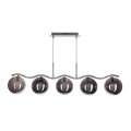 Moderné závesné svietidlo LUMOS s piatimi svetelnými bodmi je elegantným návrhom stropného osvetlenia do obývačky, jedálne, kuchyne alebo chodby. Kovová konštrukcia v chrómovej farbe dokonale ladí so sklenenými tienidlami v grafitovom tienidle s priemerom 14 cm, čím dodáva interiéru štýlový charakter a modernú ľahkosť. Každé z piatich tienidiel ukrýva objímku pre žiarovku G9 s maximálnym výkonom 20 W (nie je súčasťou balenia), čo umožňuje rovnomerné osvetlenie priestoru a možnosť individuálneho výberu svetelných zdrojov - aj LED. Chrómová povrchová úprava dodáva eleganciu a kompaktné rozmery robia svietidlo ideálnym do menších aj väčších miestností. Špecifikácie produktu: – Model: LUMOS – Typ: závesné / stropné svietidlo – Materiál: kov + sklo – Farba konštrukcie: chróm – Farba tienidla: grafitová – Počet svetelných bodov: 5 – Objímka: G9 – Max. výkon: 5x20W – Priemer tienidla: 14 cm – Napájanie: 230V – Zdroj svetla: nie je súčasťou balenia – Štýl: moderný, elegantný – Použitie: obývačka, jedáleň, kuchyňa, hala Svietidlo LUMOS je kombináciou vysoko kvalitného spracovania s nadčasovým dizajnom – perfektná voľba pre ľudí, ktorí si cenia dizajn a funkčnosť.