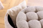 Čalúnenie z bouclé látky je hlavným prvkom, ktorý dodáva taburetu ZETHOS jeho jedinečný vzhľad. Táto textília je známa svojim mäkkým, jemne štruktúrovaným povrchom, ktorý pripomína slučkovú textúru. Nielenže pôsobí luxusne a moderne, ale tiež prináša pocit hrejivosti a útulnosti, vďaka čomu sa taburet ľahko začlení do akéhokoľvek priestoru. Búrajúca látka je tiež odolná a príjemná na dotyk, čo zaisťuje dlhodobú spokojnosť pri používaní.