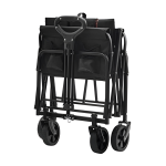 Vďaka skladacej konštrukcii je vozík ľahko uskladniteľný a behom chvíľky pripravený na použitie. V zloženom stave zaberá minimum miesta as hmotnosťou iba 5 kg sa s ním ľahko manipuluje. Štyri kolieska, z ktorých dve sú otočné, umožňujú plynulý pohyb aj na nerovnom povrchu. Výškovo nastaviteľná rukoväť sa prispôsobí rôznym postavám a zaisťuje pohodlie pri tlačení alebo ťahaní. Samotné koliesko má priemer 12 cm, čo pomáha pri prekonávaní drobných prekážok v teréne.