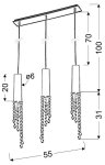 LED závesné svietidlo v exkluzívnej krištáľovej verzii. Mimoriadne dekoratívne, jednoduché kovové tienidlá na lampy zdobené priehľadnými kryštálmi, ktoré efektívne rozptyľujú prúdy svetla, zavesené na kovových lankách umožňujúcich nastavenie výšky.