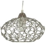 Priemyselné tienidlo na lampu s priestorovým kovovým tienidlom z drôtu. Chrómová povrchová úprava dodáva eleganciu. Záves s priehľadným lankom a ozdobným kovovým tienidlom umožňuje nastavenie výšky skrátením a zaisťuje optimálne prispôsobenie osvetlenému interiéru.